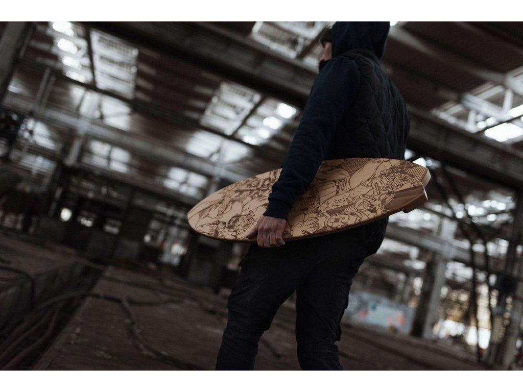 Surf Superheroes je stylový kousek s celoplošným gravírováním. Jako všechny desky, je opatřen ochranným lakem a nánosem protiskluzové vrstvy