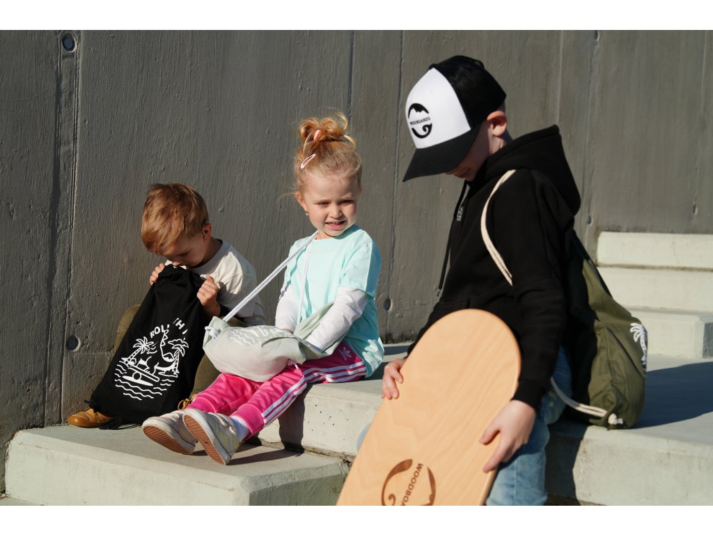Tento pytlík/vak s motivem Woodboards je skvělým doplňkem pro děti i rodiče — stačí zatáhnout za šňůrku a máte vše pohromadě: oblečení, tréninkové pomůcky, hračky i vybavení na kroužek. Zadní část je elegantně jednoduchá, vpředu najdete výrazný motiv‑grafiku Woodboards, která připomíná, že rovnováha a pohyb mohou být hravé a cool.