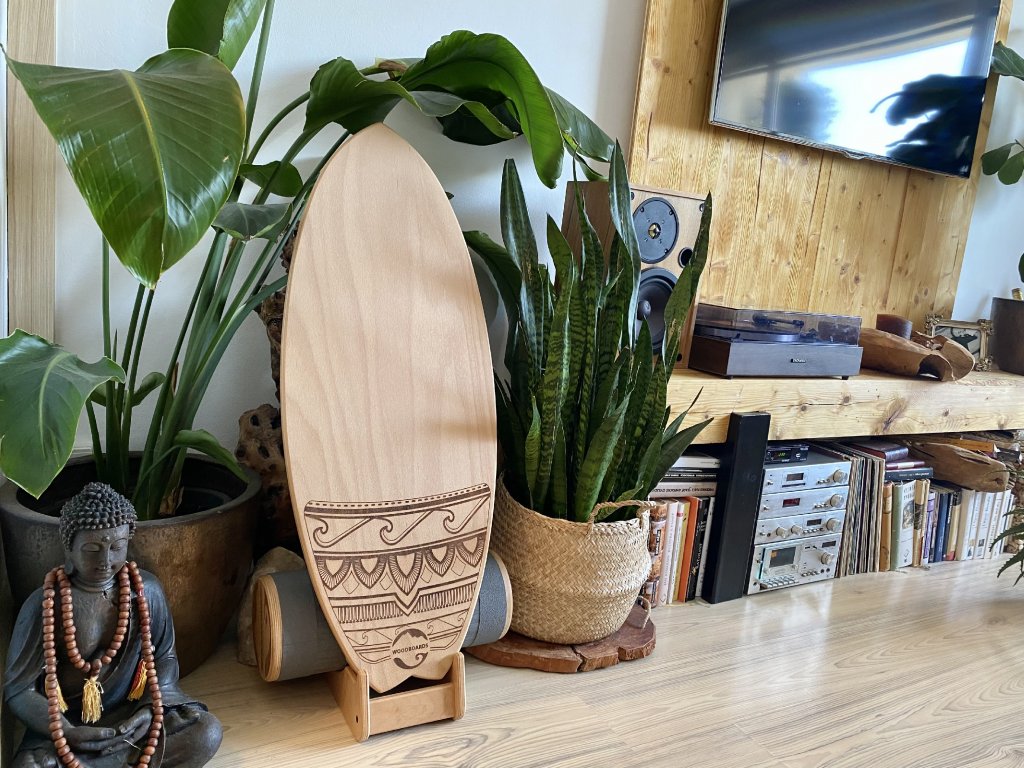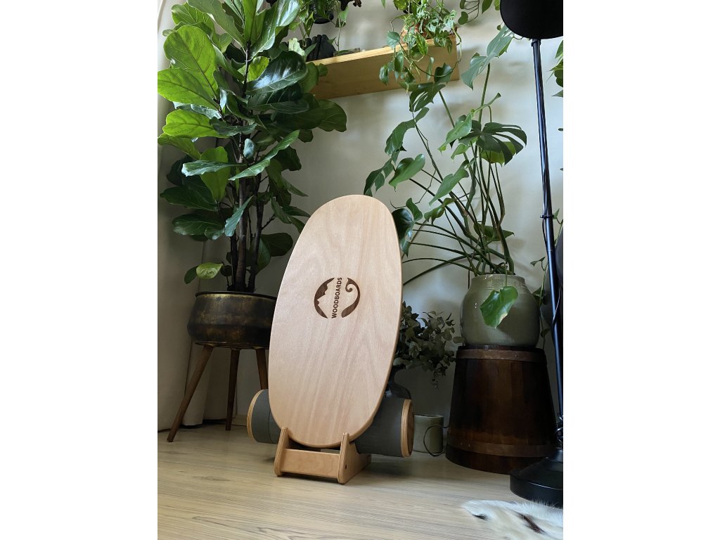 - Elegantní uložení: Stojan umožňuje bezpečně a esteticky uložit balanční desku a válec, aniž by zabíraly příliš mnoho místa.