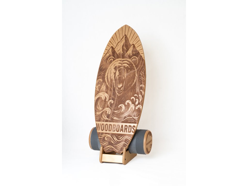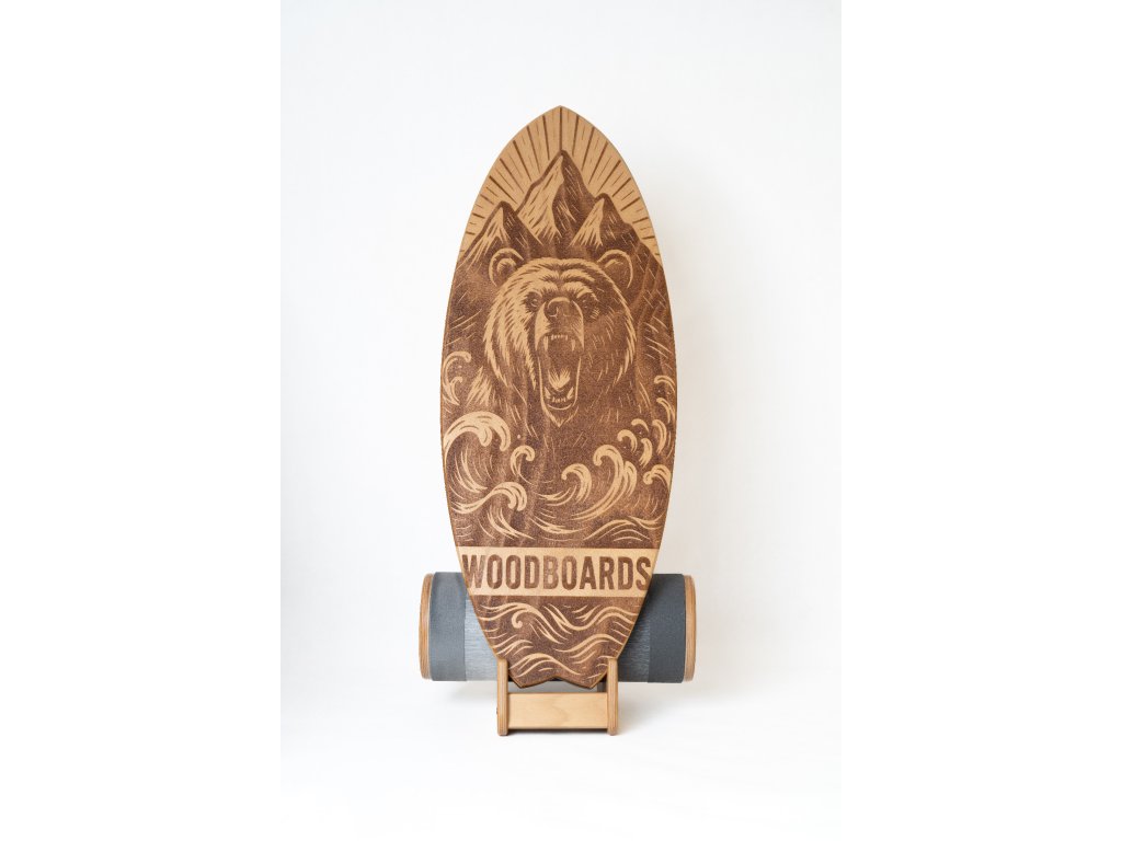 Každá deska je jedinečná. Design medvěda symbolizuje sílu, odvahu, stabilitu a propojení s přírodou – přesně to, co balancování s Woodboards přináší.