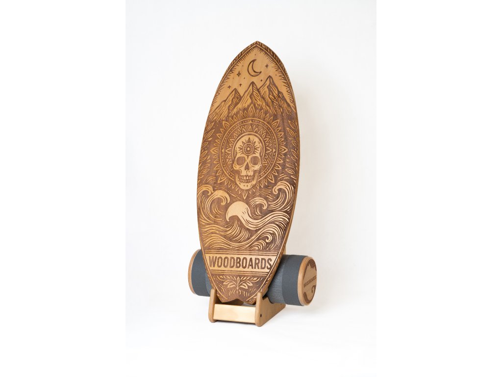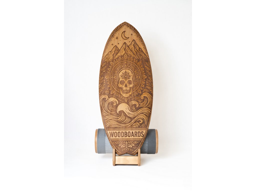 Lebka na desce Woodboards symbolizuje odvahu postavit se výzvám – nejen fyzickým, ale i mentálním.