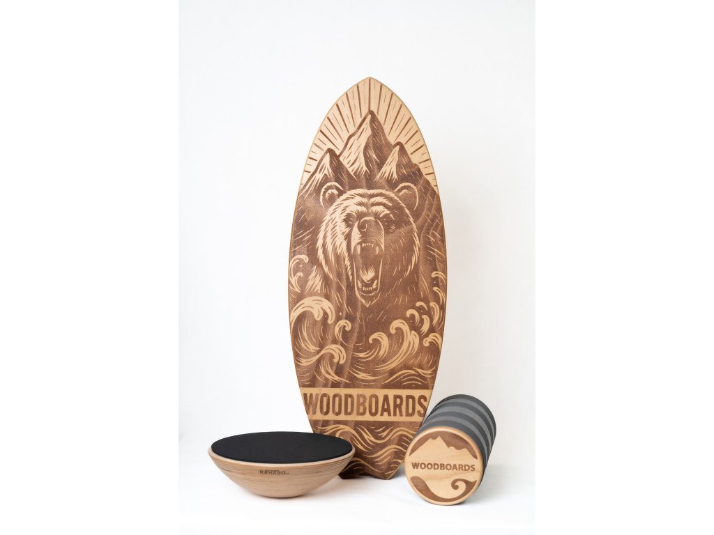 Každá deska je jedinečná. Design medvěda symbolizuje sílu, odvahu a propojení s přírodou – přesně to, co balancování s Woodboards přináší.